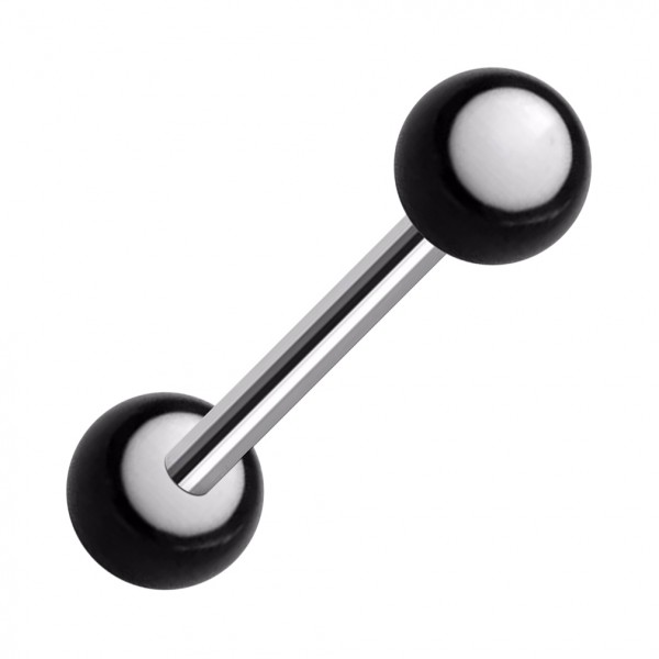 Zungenpiercing Acryl Punkt Weiß / Schwarz UV-Aktiv